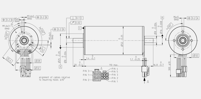 | Carico radiale max. | 110 N, 5 mm dalla flangia |
